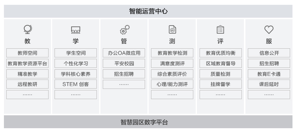 智能化智慧校園解決方案以物聯網、云計算、大數據、AI、移動互聯網等先進技術為基礎,建設智能化智慧校園,統籌建設智能化一體化教學、管理與服務平臺。賦能科研創新、提高教學質量和效率,培育優質人才。