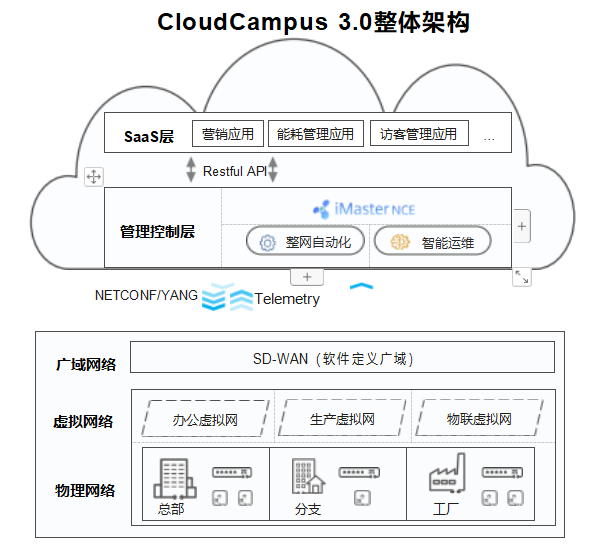 數(shù)字化正在從企業(yè)辦公延伸到生產(chǎn)、銷(xiāo)售、服務(wù)各個(gè)方面,無(wú)線終端數(shù)量爆發(fā)式增長(zhǎng),萬(wàn)千應(yīng)用加速?gòu)谋镜?nbsp;向云端遷移,網(wǎng)絡(luò)也正從本地局域互通向多分支多云互聯(lián)的全球一張網(wǎng)架構(gòu)演進(jìn)。然而,傳統(tǒng)網(wǎng)絡(luò)以連接本地應(yīng)用及有線終端為主, 在數(shù)字化時(shí)代難以為繼。我們需要全新的網(wǎng)絡(luò)架構(gòu)才能夠?撐千變?nèi)f化的數(shù)字化業(yè)務(wù)。華為云園區(qū)網(wǎng)絡(luò)解決方案3.0 (CloudCampus 3.0) , 應(yīng)用IoT、Wi-Fi 6、 SDN、 SD-WAN、云管理和AI等 技術(shù),幫助企業(yè)構(gòu)建一張全無(wú)線接入,全球一張網(wǎng),全云化管理和全智能運(yùn)維的園區(qū)網(wǎng)絡(luò)。從而,企業(yè)將受益于 極速的無(wú)線業(yè)務(wù)體驗(yàn),隨時(shí)隨地的自由協(xié)作和溝通,敏捷的云應(yīng)用上線,以及可靠的應(yīng)用體驗(yàn)保障,讓大企業(yè)、政府、高校、普教、 醫(yī)療、零售、交通等各行業(yè), 在云時(shí)代抓住數(shù)字化轉(zhuǎn)型新機(jī)會(huì)。