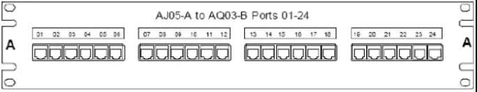 例如,連接到圖4.7.4-3所示配線架第一個位置的線纜可能包含如下標簽:AJ05-A01/AQ03-B01。 AQ03 機柜中的同一根電纜將包含以下標簽:AQ03-B01/AJ05-A01。如圖6 如圖。